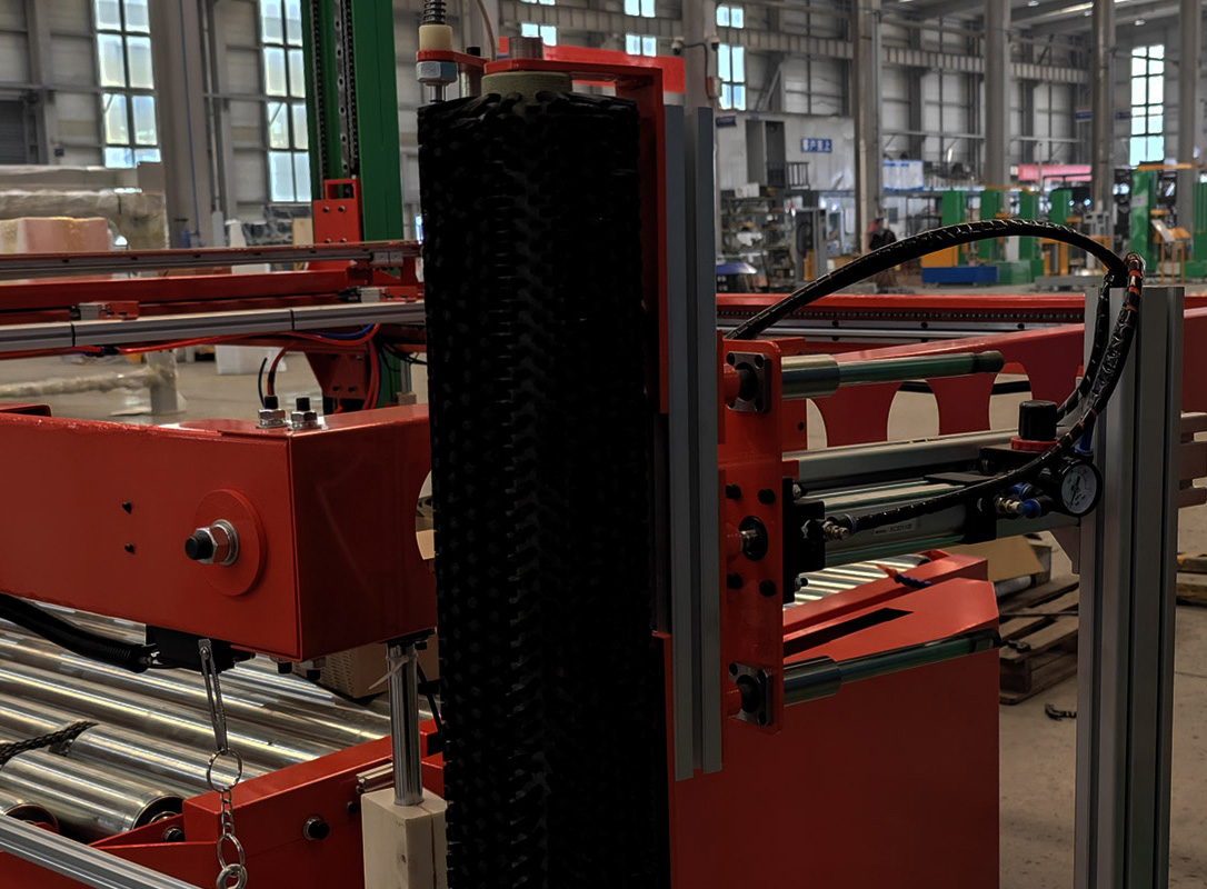 這套設(shè)備包括(配套滾筒輸送線、臥式自動捆扎機(jī)、立式自動捆扎機(jī)、旋臂在線托盤包裝機(jī)等) 工作原理:托盤自動進(jìn)入定型機(jī),經(jīng)光電定位后,通過前后左右定型推板設(shè)置,對托盤進(jìn)行五面定型后,定型機(jī)的入口門降低,輸出門升高。托盤的輸出。由于采用五面成型,托盤不歪斜,貨物尺寸規(guī)整,可配合后續(xù)的旋臂在線包裝機(jī)進(jìn)行運(yùn)輸和儲存。 設(shè)備優(yōu)點(diǎn):整機(jī)采用多功能人機(jī)界面觸摸顯示系統(tǒng),PLC控制。大顯示屏可實(shí)時(shí)顯示設(shè)備運(yùn)行狀